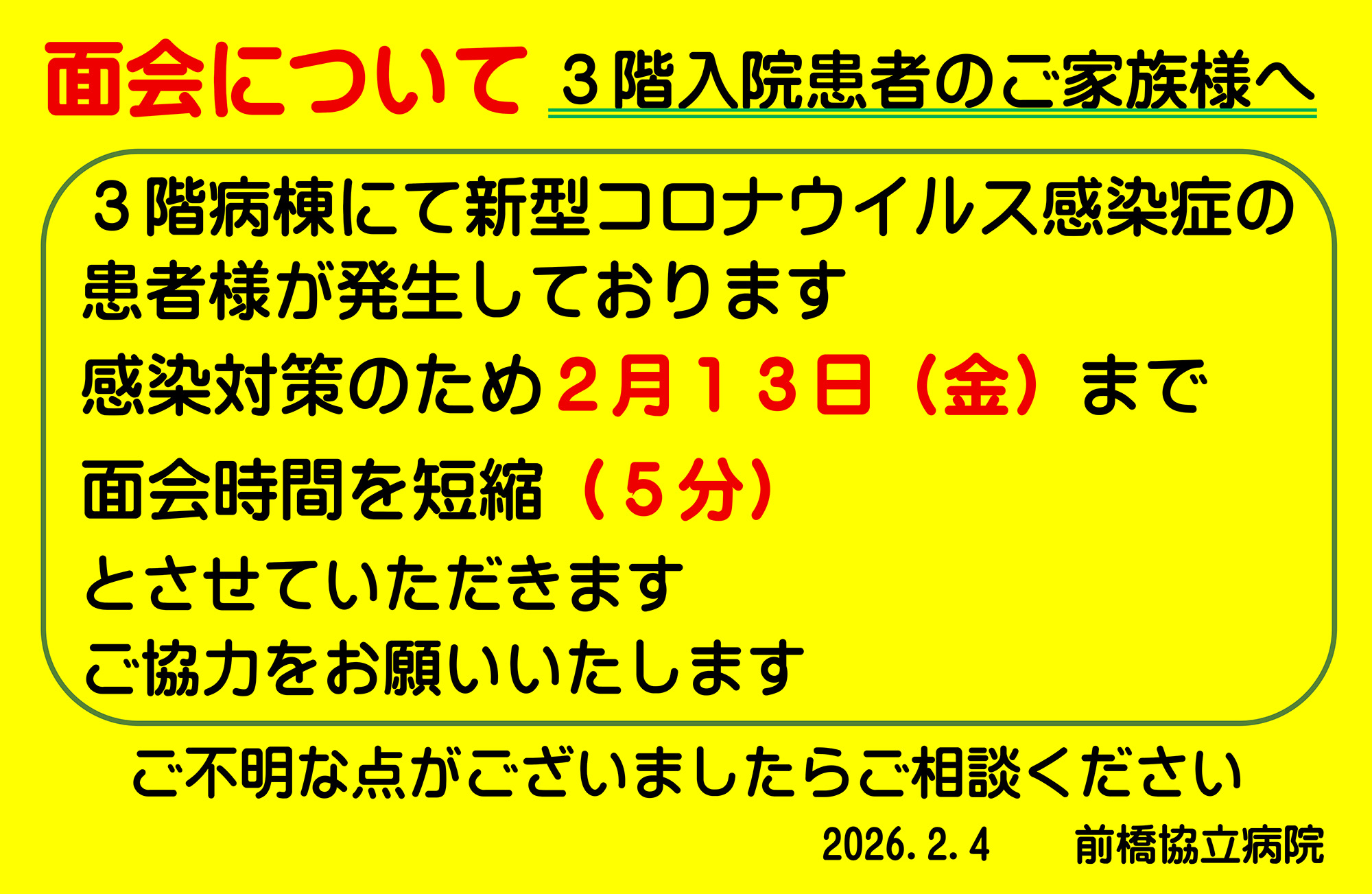 感染拡大の状況によっては、面会を中止させていただく場合があります。