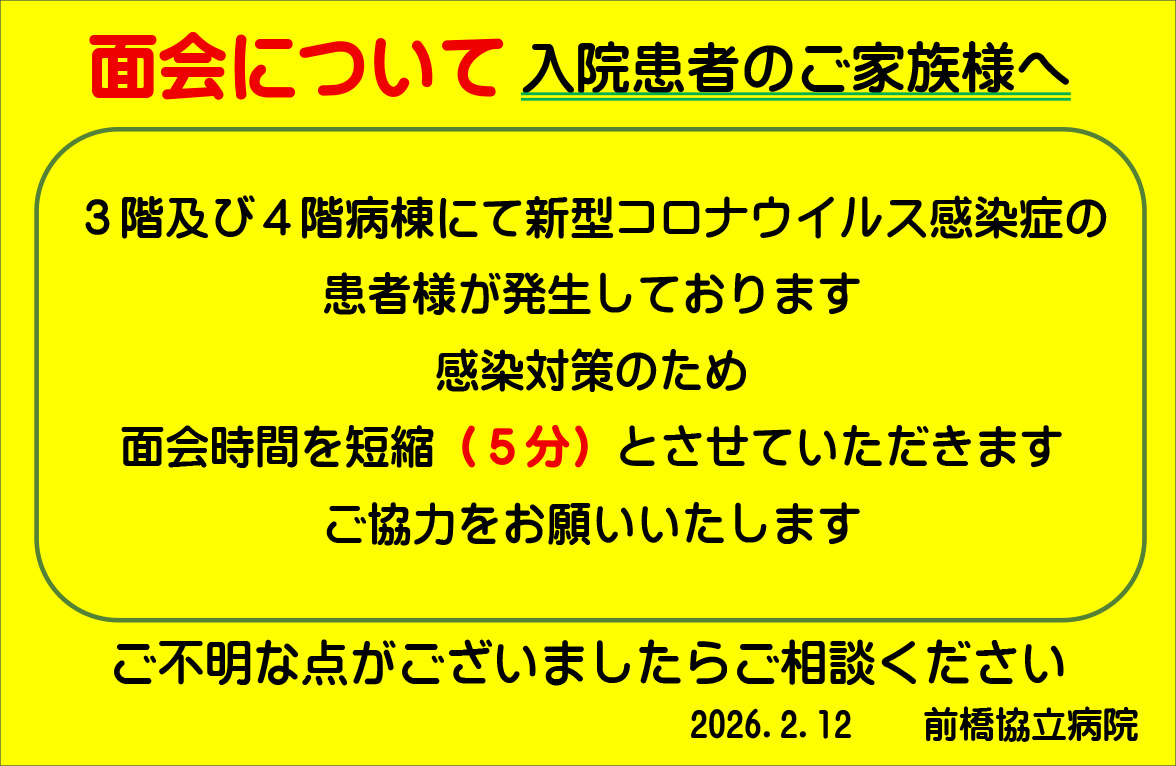 - 面会時間短縮のお知らせ(3F病棟)